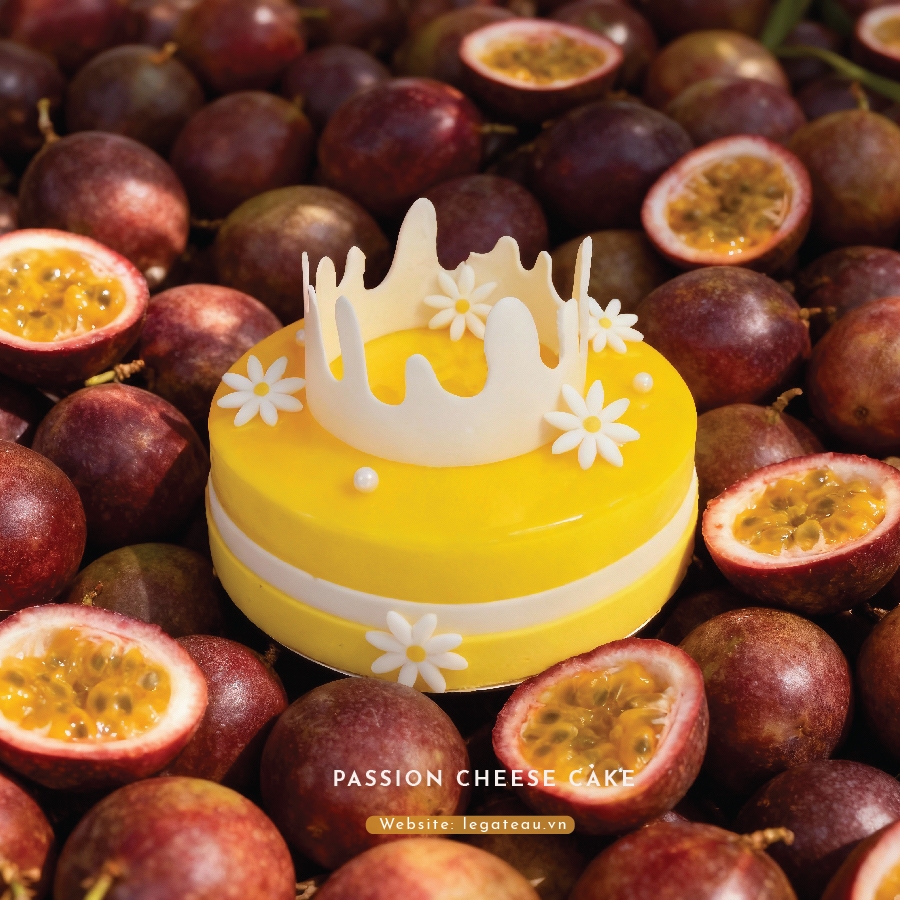 Khám phá hương vị tươi mát của Bánh Phô Mai Chanh Leo! Với cốt bánh bông lan vanilla mềm mịn, kết hợp cùng lớp phô mai vị chanh leo thơm ngát và kem curd béo ngậy,
