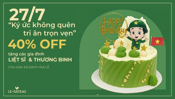 Le Gâteau dành ưu đãi 40% cho các gia đình liệt sĩ & thương binh như một lời cảm ơn sâu sắc.
