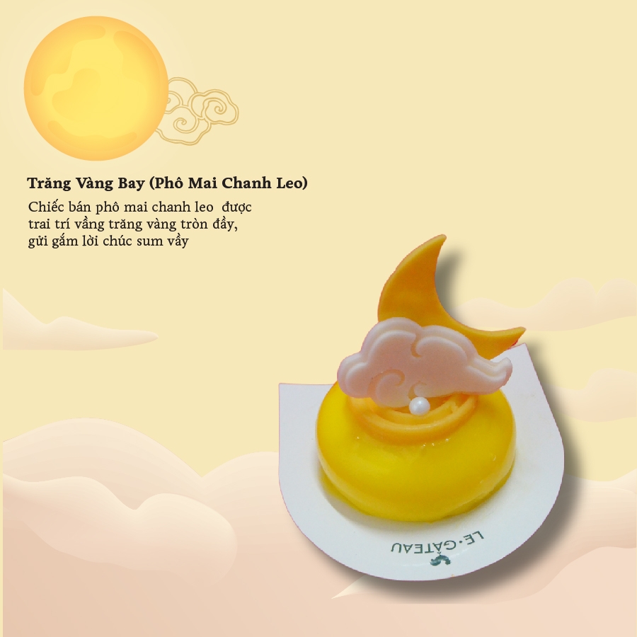 Trăng Vàng Bay** – Phô mai Chanh Leo: vầng trăng tròn vẹn, nâng niu niềm vui đoàn viên.